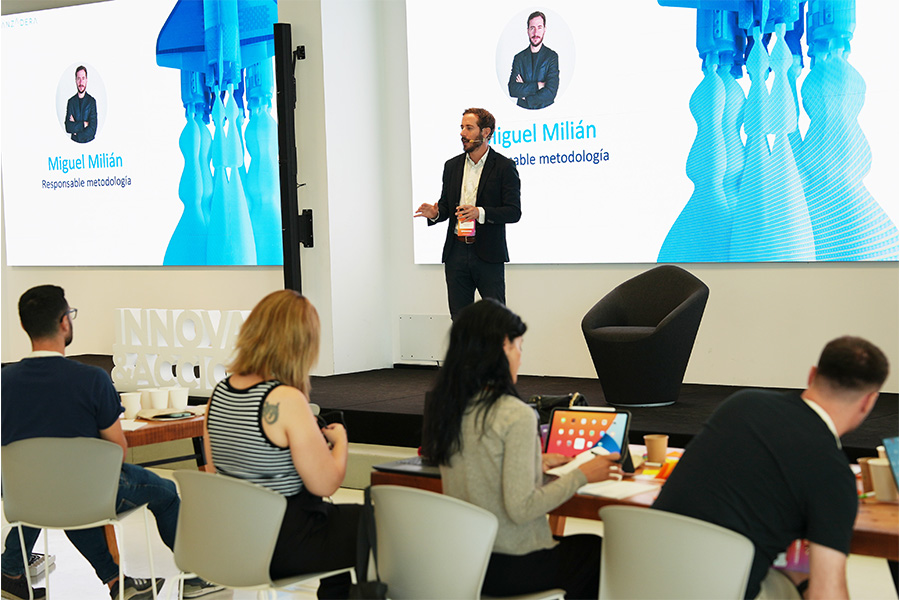 “Lo primero que se llevan las empresas que han participado en el Hackathon de Intraemprendimiento es que van a reconocer aún más que tienen mucho talento en casa. Un intraemprendedor es alguien que no se conforma con su trabajo rutinario en su día a día, sino que está dando vueltas a cómo mejorar. Y es muy importante que las empresas tengan gente con esta actitud, que estén siempre pensando en la mejora continua.” Miguel Milián de Lanzadera.