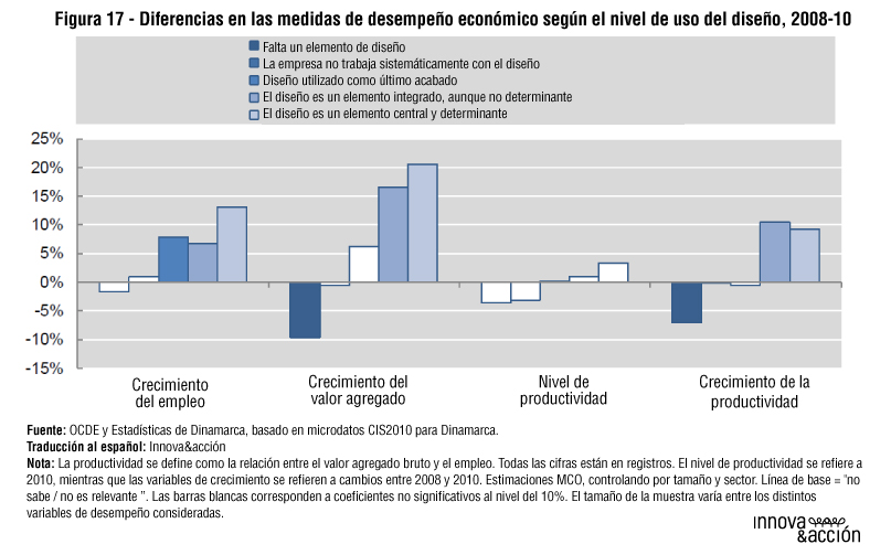 Aunque no es fácil encontrar datos sobre la importancia del diseño en la innovación, la propia OECD publica un estudio sobre el tema con el objetivo de identificar las variables que permitan caracterizar y medir el papel del diseño en la recogida de información estadística y, con ello, ampliar el catálogo del Manual de Oslo. Aunque se trata de las primeras fases de un trabajo que debe ser continuado, pueden extraerse ya algunas relaciones del diseño con indicadores económicos y de innovación obtenidos a partir de encuestas realizadas a empresas danesas.