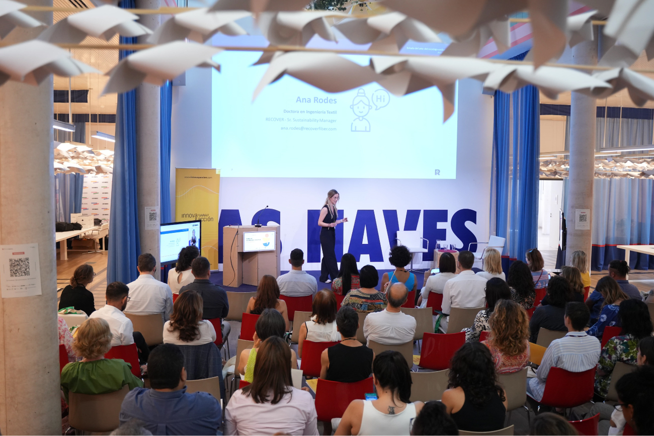 Y de artesanía pasamos a hablar de la segunda industria más contaminante del mundo como es el sector de la moda, con la ayuda de una experta como Ana Rodes, Senior Sustainability Manager de Recover. Ella supo adentrarnos en el asombroso mundo del Diseño Textil Sostenible, y concienciarnos del papel que ejerce la moda en nuestras vidas como consumidores que somos; además, de la cantidad de residuos que generamos a nivel global, muchas veces sin ser conscientes de ello. Y es que, solo en Europa producimos 7,5 millones de toneladas de ropa usada de la que solo un 1% de ese total el que volverá a reutilizarse. Un grave problema que necesita de grandes ideas para ser resuelto y crear un impacto positivo en el entorno a través de un diseño textil sostenible.