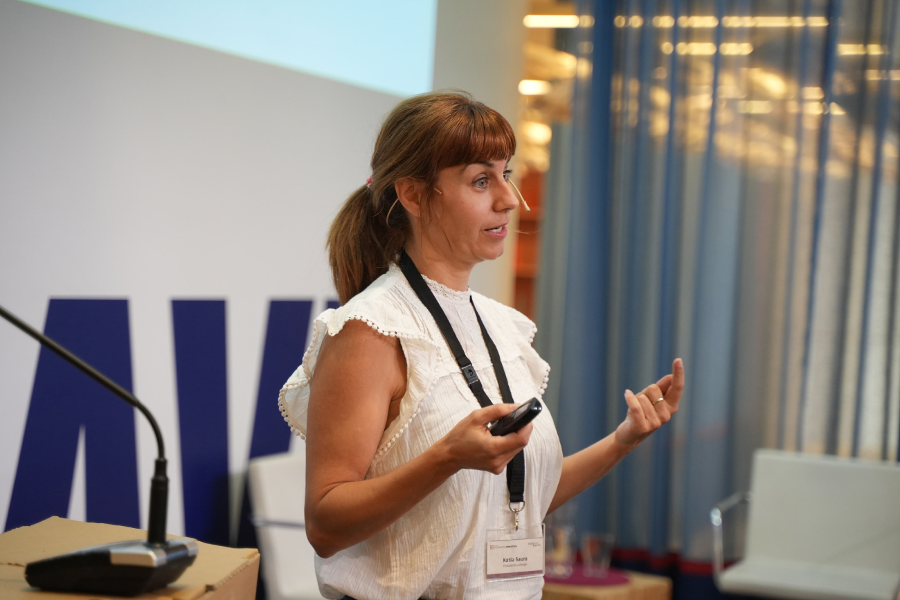 Y después de ello, llegó el momento de Katia Saura, consultora de sostenibilidad que nos supo llevar a la práctica todos los temas que anteriormente se habían abordado, hablándonos de la economía creativa a través de diferentes modelos de negocio sostenibles en base a su experiencia y recorrido profesional en Chócala Ecodesign. Ayudándonos a entender y materializarlo todo, mostrándonos diferentes ejemplos y productos en los que se ha llevado a cabo un proceso de creación de productos sostenibles, desde la ideación hasta el desarrollo de un modelo de negocio con impacto positivo en la sociedad actual.