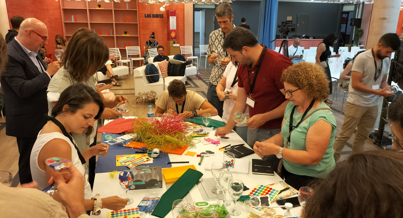 Como no podía ser de otra forma, la comida fue precedida de un magnífico taller dinamizado por Lorena Cabeza que animó a los participantes a diseñar una propuesta de valor plasmada en una copa de vino. El objetivo del taller fue fomentar la creatividad, hacer algo excepcional partiendo de una base que era común para todos y defender el proyecto ante otros participantes, exaltando sus puntos fuertes.